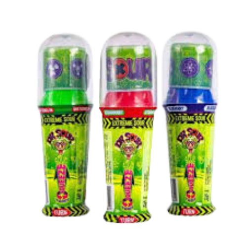Probeer Dr. Sour Twist ‘n Squeeze voor een interactieve en zure snoepervaring! Deze innovatieve traktatie stelt je in staat om de zuurheid naar wens aan te passen door de tube samen te knijpen en een smakelijke gel vrij te laten. Het biedt een spannende combinatie van intense smaken die je kunt doseren voor de perfecte zuurkick, ideaal voor degenen die houden van een persoonlijke twist aan hun snoep.